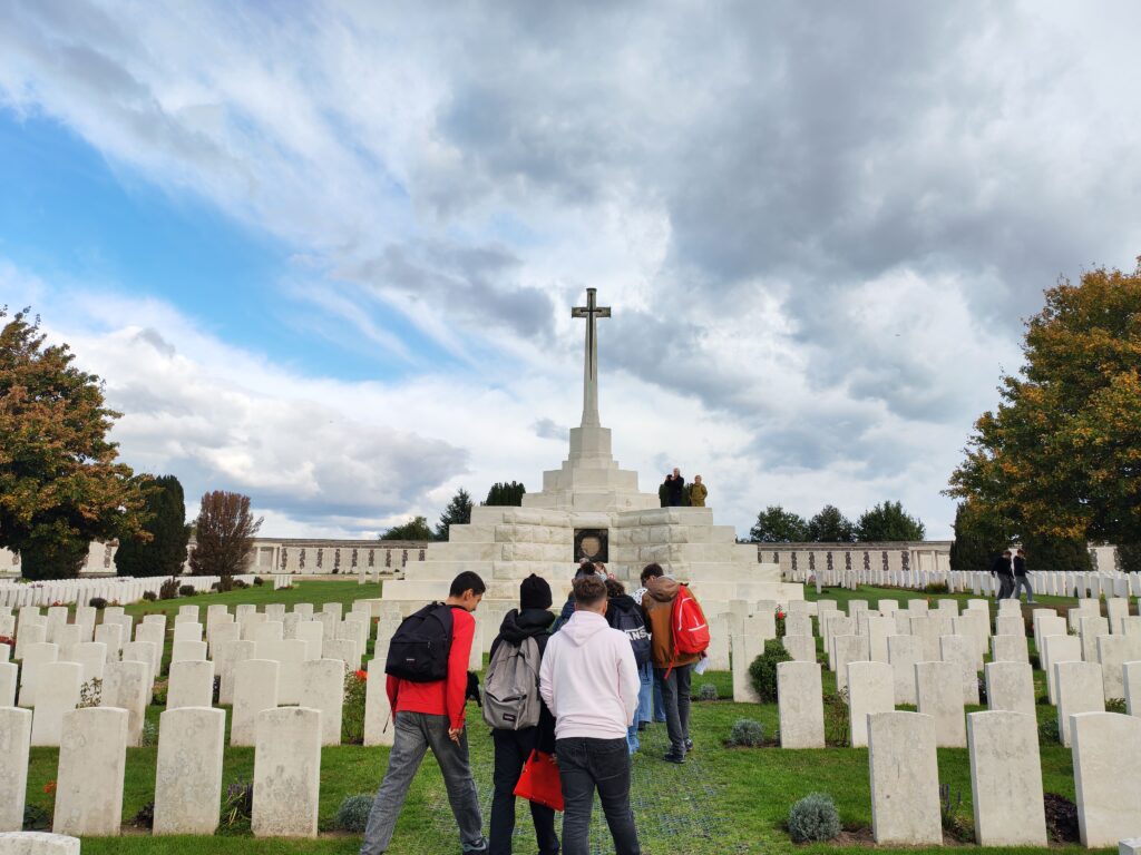 Cinq lieux au programme de cette journée Mémoire : le musée de Paschendaele, la porte de Menin, où sont gravés plus de 50 000 noms de soldats du Commonwealth qui sont morts et dont on n’a pas retrouvé le corps, et trois cimetières, pour comparer comment allemands, français et britanniques ont rendu hommage à leurs soldats morts pendant la 1è guerre mondiale. Une journée pour faire mémoire et aussi pour mieux se connaître, une journée pour travailler sur le terrain et donner corps à ce qui a été travaillé en classe. Merci à l’équipe d’Histoire Géographie pour l’organisation !