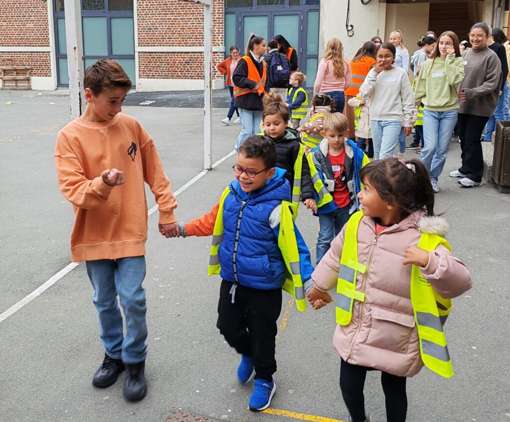 Une grande première à Wattrelos : les CP des écoles catholiques étaient invités à participer à un cross encadré par une classe de 3è du collège. Venus de l’école Enfant Jésus, de l’école Lacordaire, de Notre Dame de Lourdes et de Notre Dame de la Mousserie, les CP se sont retrouvés au parc du Lion pour une matinée incroyable ! Les sourires illuminaient les visages. Bravo à tous !
