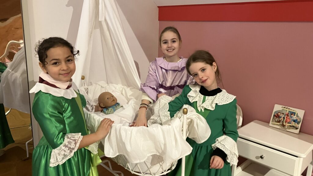 - Des espaces ludiques en rapport avec les ouvrages : classe, montgolfière, chambre où les enfants se sont déguisés.